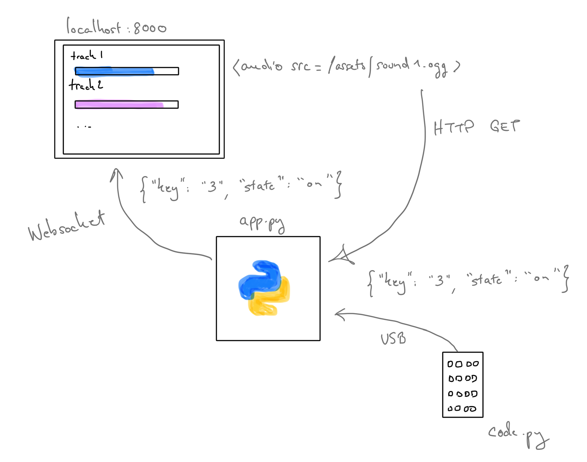 Every press loads a random sound from the list and plays it. Expand this with one button per channel, or even map buttons to folders of sounds.